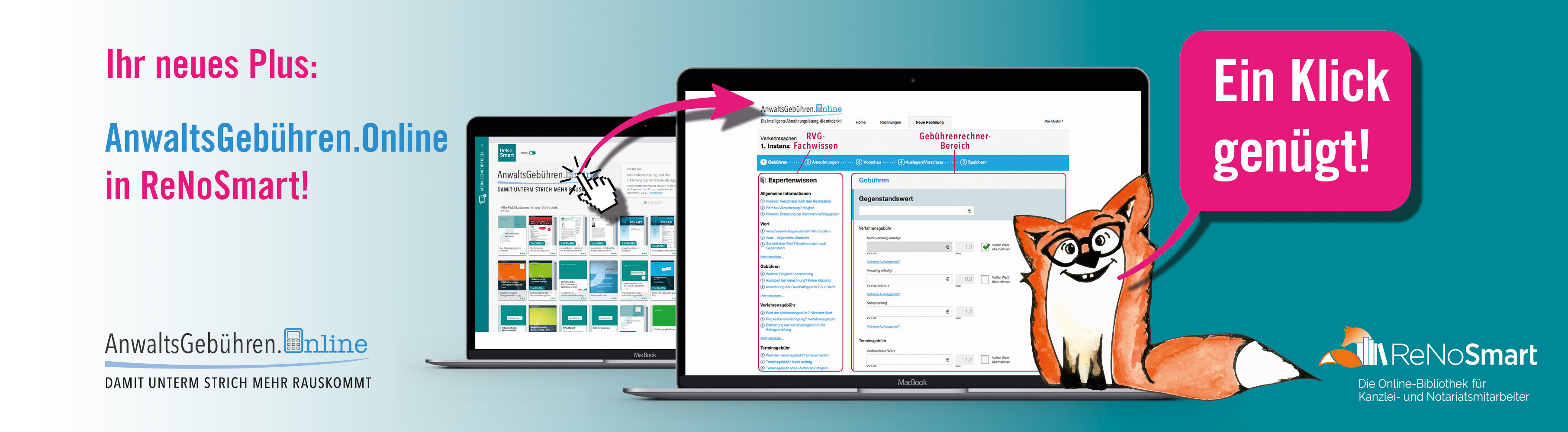 Die erste Onlinebibliothek speziell für ReNos! In ReNoSmart finden Sie Ihre benötigten Infos schnell, aktuell und rechtssicher aus über 100 Fachbüchern und 9 Periodika. ReNoSmart bietet Ihnen das gesammelte ReNo-Wissen aus drei Fachverlagen. Vollgepackt mit Themen wie Zwangsvollstreckung, ERV, Abrechnung plus viele weitere Rechtsgebiete und ReNo-Hilfen.